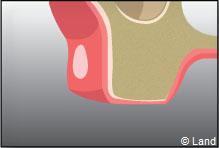 La fermeture de la cavité s’effectue souvent à l’aide de points de suture servant à réunir les bords de la gencive.